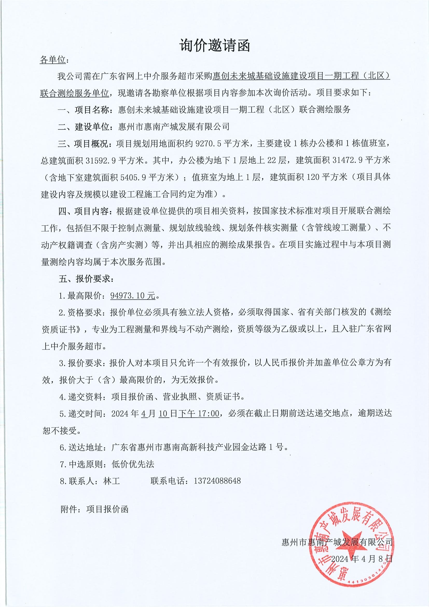 惠創(chuàng)未來城基礎(chǔ)設(shè)施建設(shè)項目一期工程(北區(qū))聯(lián)合測繪服務(wù)詢價邀請函