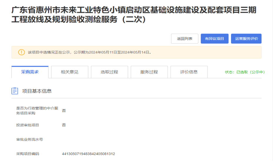 【公示】廣東省惠州市未來工業(yè)特色小鎮(zhèn)啟動區(qū)基礎(chǔ)設(shè)施建設(shè)及配套項目三期工程放線及規(guī)劃驗收測繪服務(wù)(二次)