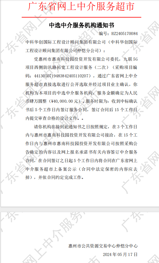 【中選公示】九聯(lián)5G 項目西側(cè)防汛路拓寬工程設(shè)計服務(wù)(二次)