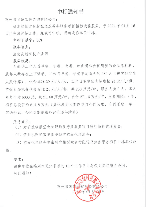 【中標通知】研發(fā)樓飯?zhí)檬巢呐渌图皠趧?wù)服務(wù)項目招標代理服務(wù)
