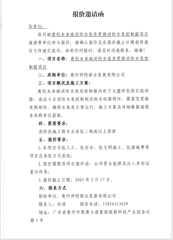 惠創(chuàng)未來城消防水泵房更換消防水泵控制箱項目