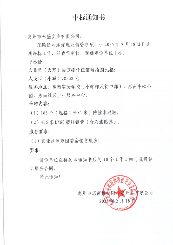 【中標(biāo)通知】采購防沖水泥墩及鋼管事項