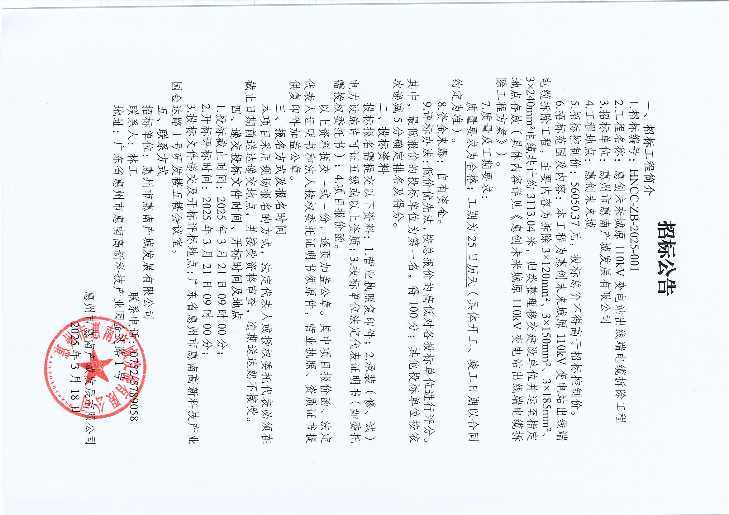 【招標(biāo)公告】惠創(chuàng)未來城原110kV變電站出線端電纜拆除工程