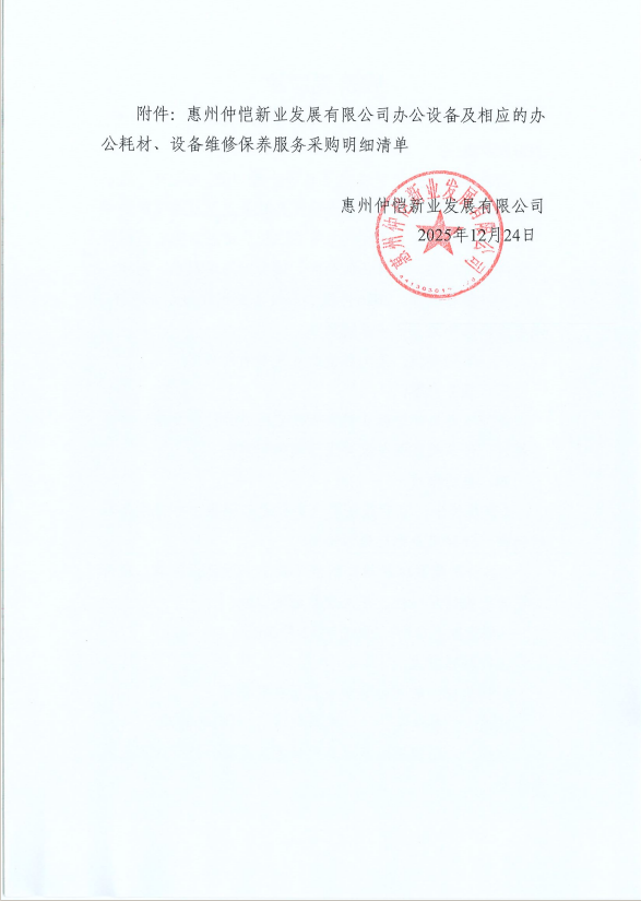 【報(bào)價(jià)邀請(qǐng)函】惠州仲愷新業(yè)發(fā)展有限公司2026年度辦公設(shè)備及相應(yīng)的辦公耗材、設(shè)備維修保養(yǎng)服務(wù)定點(diǎn)采購(gòu)項(xiàng)目