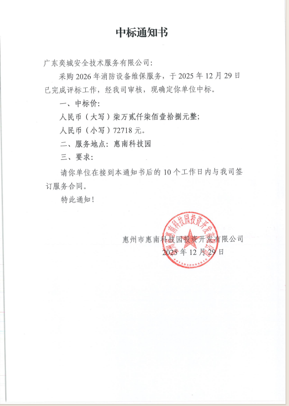 【中標(biāo)通知】2026年消防維保服務(wù)