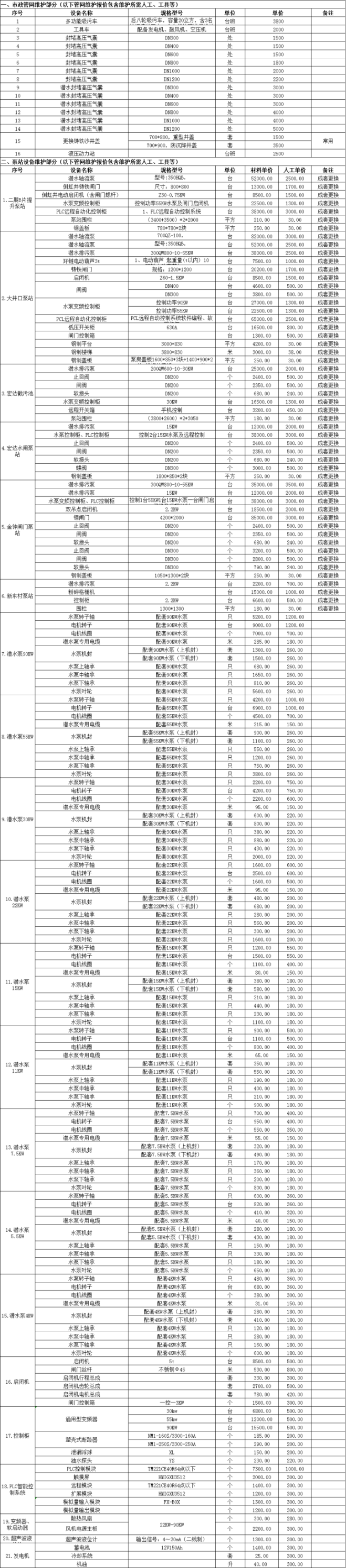 1.服務單位根據(jù)市政排水管網(wǎng)及泵站設備維護服務清單進行報價(見下表),報價需包含完成本服務工作所需費用(包括但不限于:人工費、機械費、材料費、管理費、利潤、稅費等)。